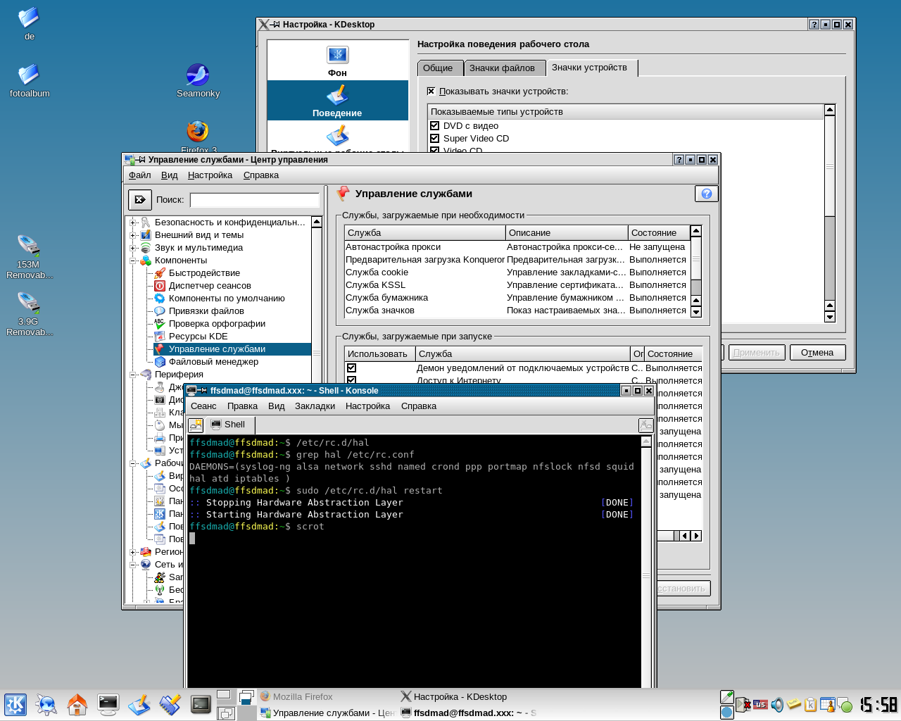 Включите службы KDE3: центр управления KDE3, компоненты, службы, найдите и включите "Демон уведомления от подключаемых устройств"